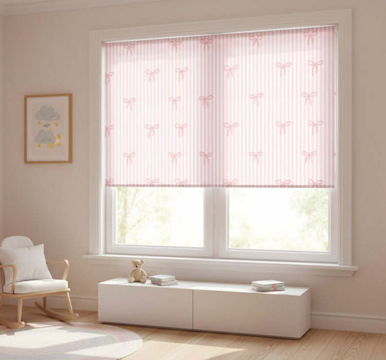 Cortina roller infantil rayas rosas y lazos