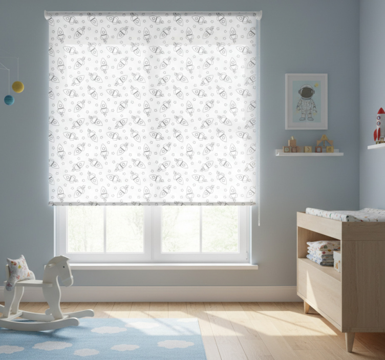 Cortina roller infantil silueta de cohetes y estrellas