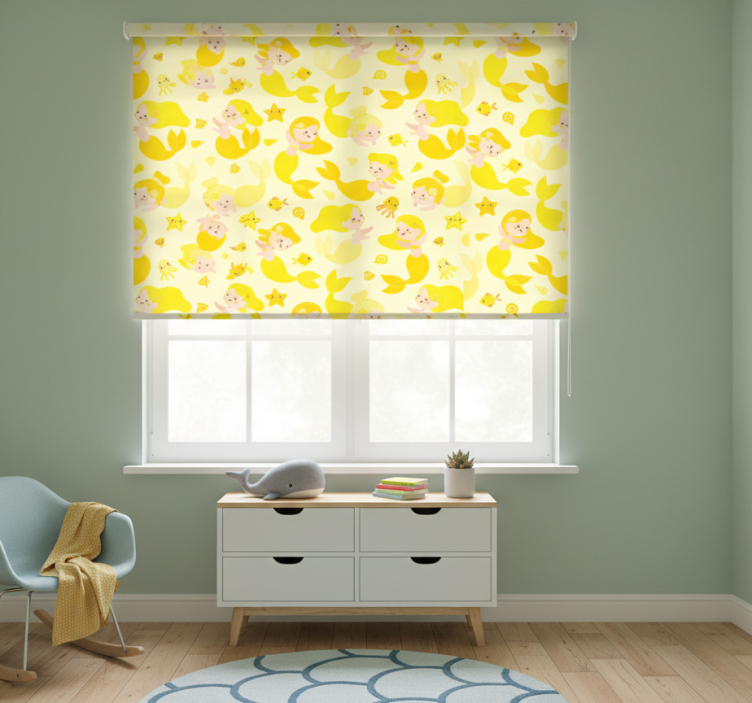 Referencia: E7100¡Descubre la magia de la Cortina roller infantil sirena amarilla sonriente! Este encantador diseño presenta una alegre sirena amarilla con una sonrisa brillante que ilumina cualquier habitación infantil. Su estilo vibrante y divertido no solo es visualmente atractivo, sino que también aporta un toque de fantasía y alegría al espacio, convirtiéndose en una pieza central ideal para la decoración de la habitación de tus pequeños.