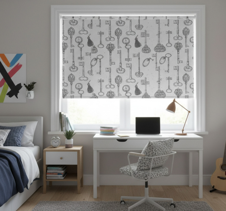Referencia: E7554¡Descubre la increíble Cortina roller juvenil diferentes llaves! Este producto destaca por su diseño moderno y alegre, ideal para cualquier habitación juvenil. Con sus texturas únicas y colores vibrantes, ¡hará que el espacio luzca fresco y acogedor! Además, su facilidad de limpieza y montaje en solo dos clics la convierten en la opción perfecta para quienes buscan comodidad y estilo.
