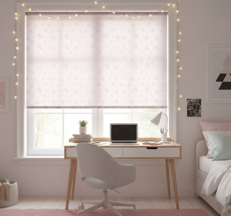 Cortina roller juvenil estrellas blancas fondo rosa