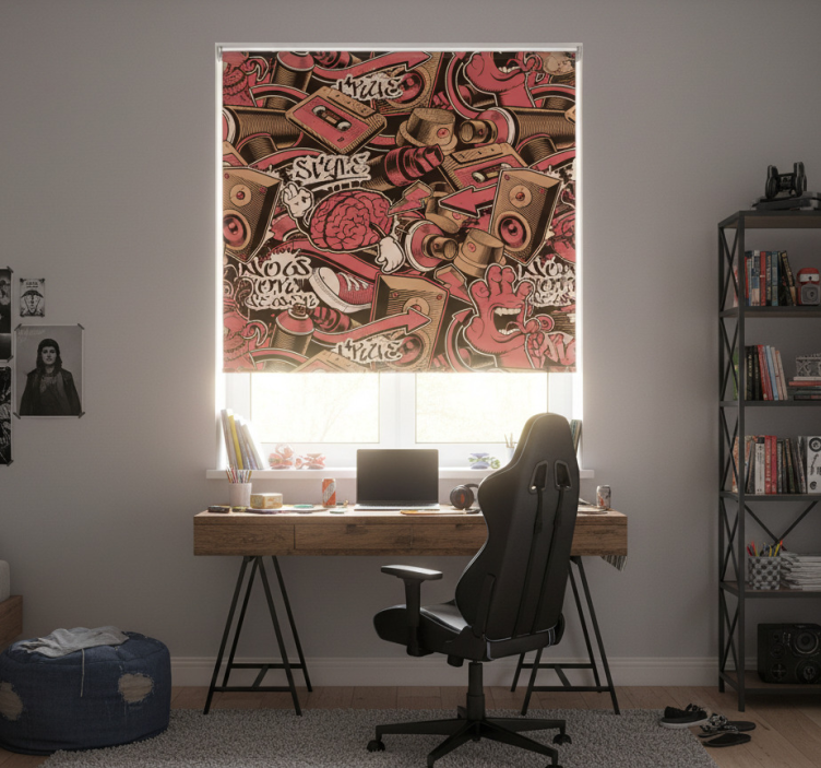 Cortina roller juvenil graffiti en rojo