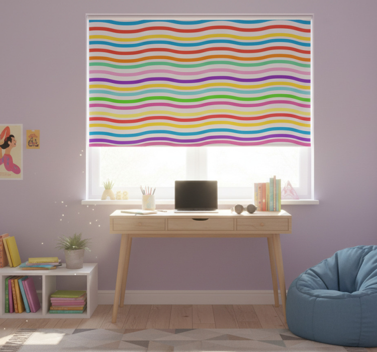 Cortina roller juvenil patrón de rayas arcoíris irregular