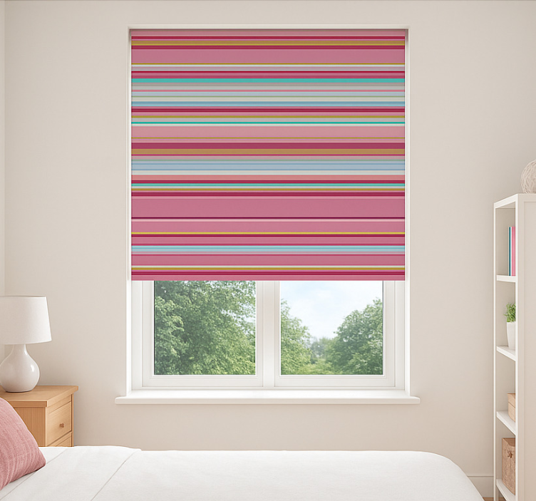 Referencia: E5856Descubre la Cortina roller juvenil patrón de rayas rosas, un hermoso complemento para la habitación de los más jóvenes que combina un diseño fresco y moderno. Sus rayas en tonos de rosa aportan un toque vibrante y alegre, ideal para crear un ambiente acogedor y lleno de vida. Esta cortina no solo es visualmente atractiva, sino que también es funcional, permitiendo regular la luz y brindando privacidad cuando se baja.