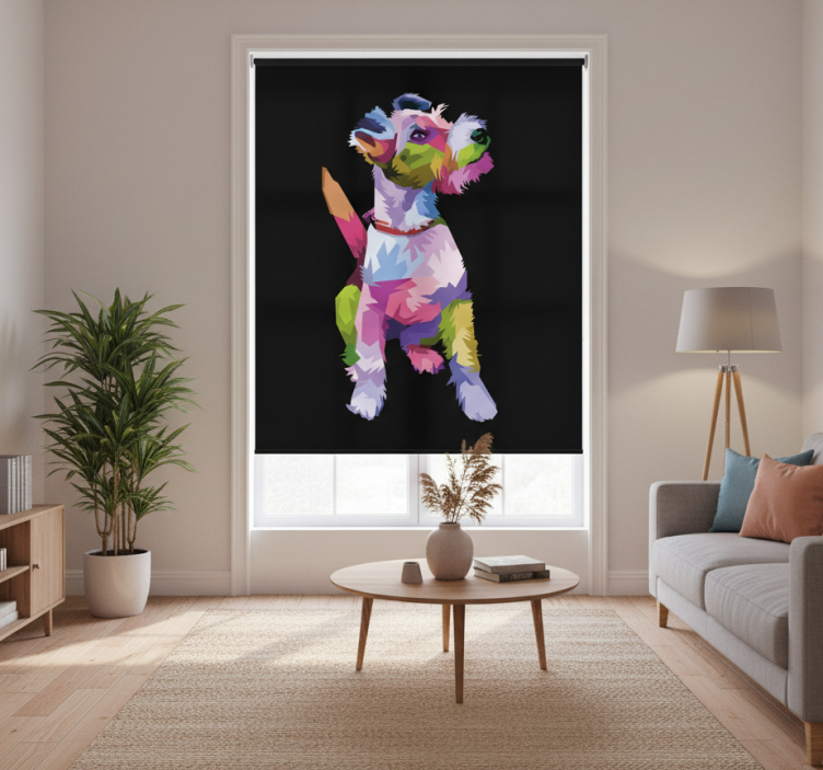 Cortina roller living comedor animales geométricos terrier