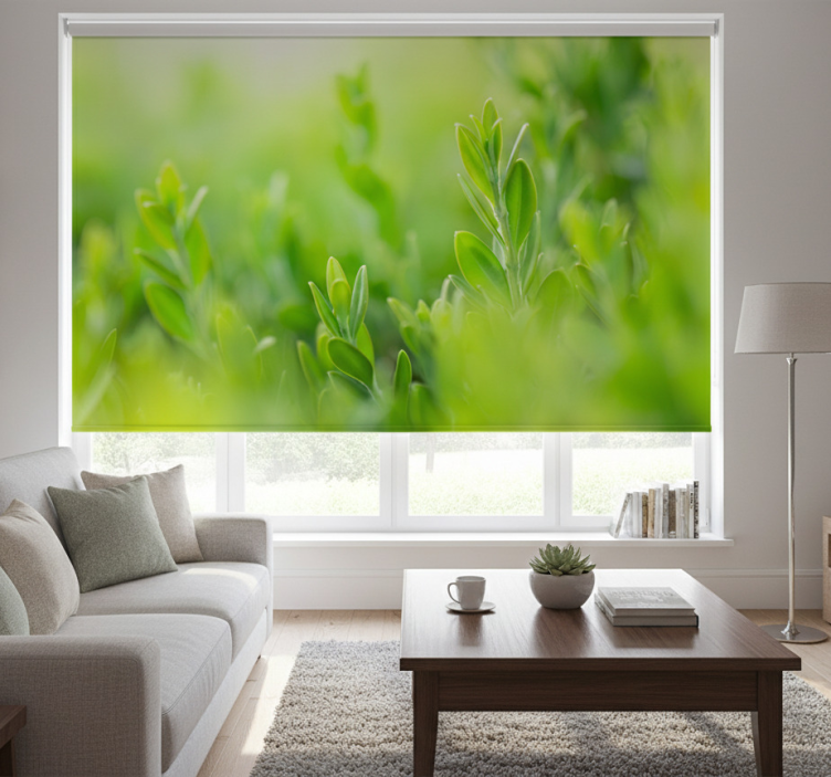 Cortina roller living comedor hojas verdes primavera