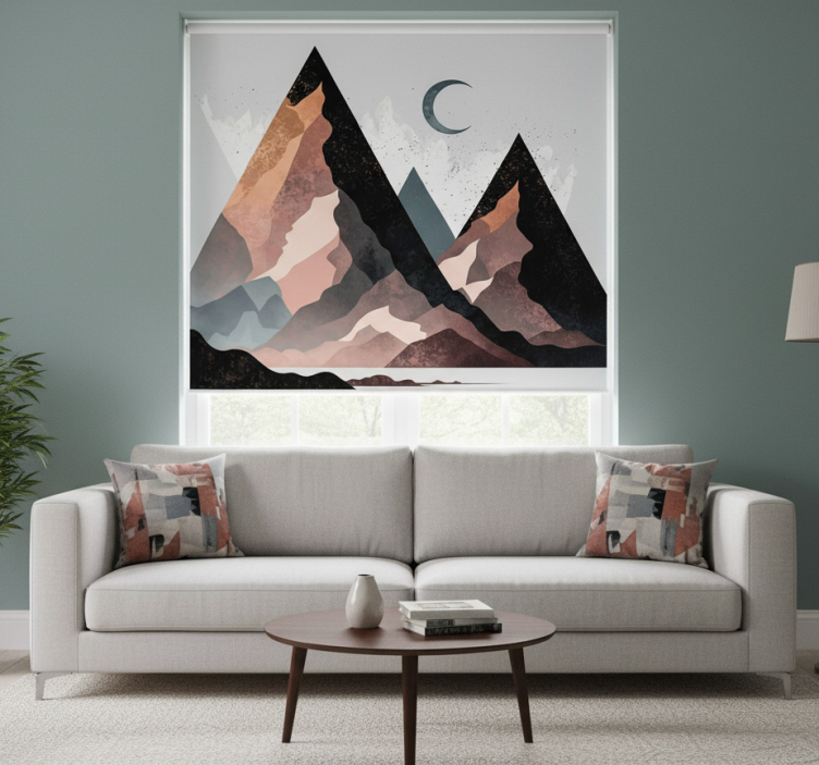 Cortina roller living comedor montañas geométricas nórdicas