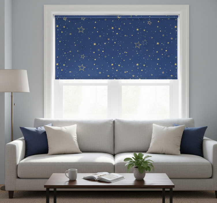 Cortina roller moderno estrellas doradas sobre fondo azul