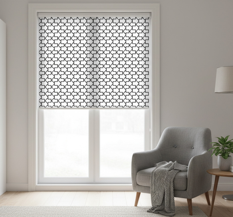 Cortina roller moderno flechas geométricas líneas negras