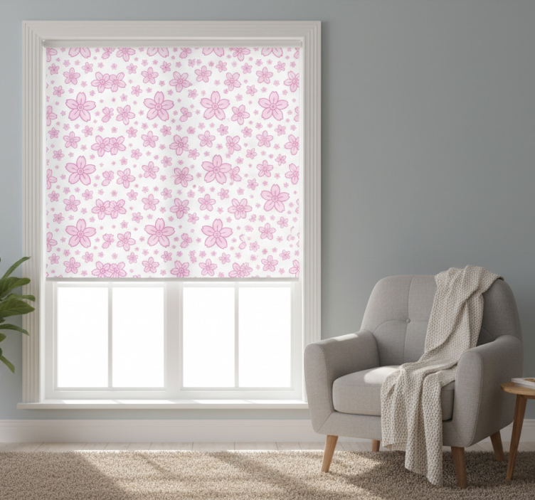 Cortina roller moderno flores pequeñas rosas sobre blanco