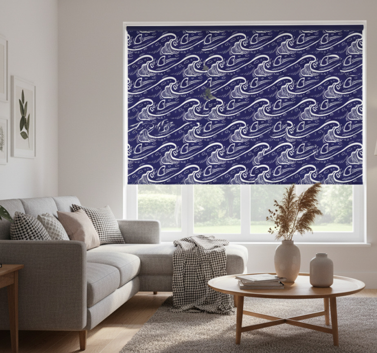 Cortina roller moderno fondo de patrón azul ondas