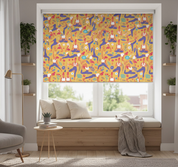 Cortina roller moderno garabato de yoga dibujado a mano