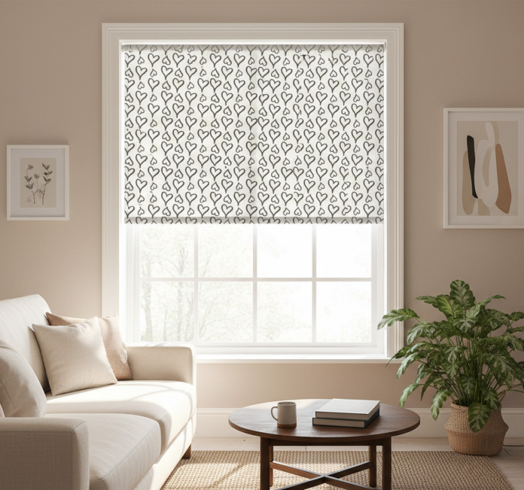 Referencia: E7766Transforma tu espacio con la Cortina roller moderno íconos de corazones negros, un diseño que combina elegancia y modernidad. Con un hermoso patrón de corazones negros sobre un fondo liso, esta cortina no solo embellece tu hogar, sino que también ofrece funcionalidad. Su fácil montaje en 2 clics y su capacidad para regular la luz y la temperatura hacen de este producto una elección práctica y estilizada para cualquier habitación.