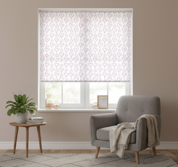 Cortina roller moderno íconos de corazones rosa