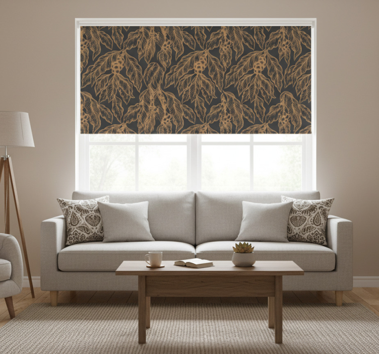 Cortina roller moderno patrón de ramas de café
