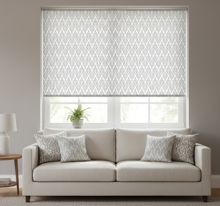 Cortina roller moderno patrón floral étnico gris