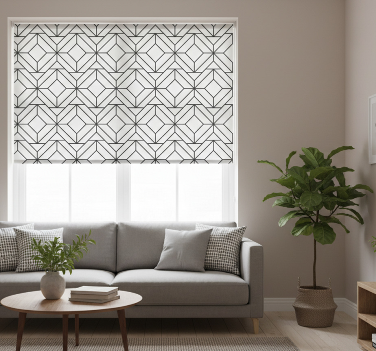 Cortina roller moderno patrón geométrico blanco y negro