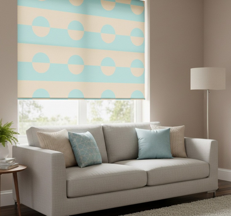 Cortina roller moderno puntos azul claro y beige cuadrados