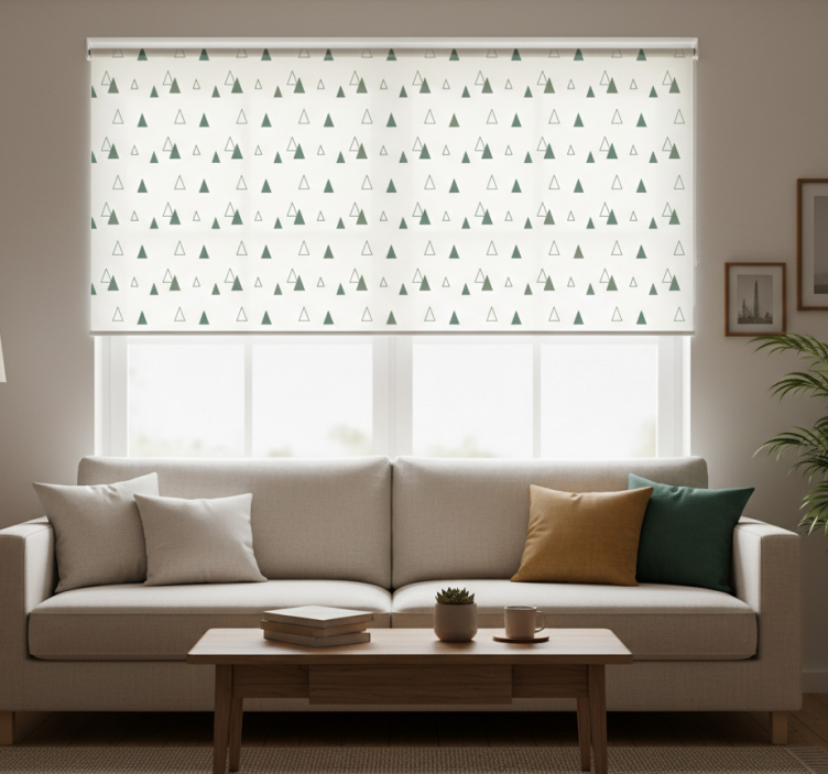 Referencia: E7796La Cortina roller moderno triángulos colores naturales es una pieza única que incorpora un diseño contemporáneo y atractivo, que combina triángulos en tonos tierra y verdes. Este estor no solo añade un toque de sofisticación a cualquier habitación, sino que también se integra armónicamente con diversas decoraciones, creando un ambiente cálido y acogedor.