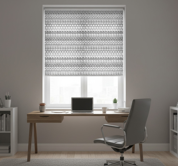 Referencia: E7867Descubre la sofisticación de la cortina roller negra con patrón tribal dibujado a mano, un accesorio que combina elegancia y originalidad. Su diseño único presenta un hermoso patrón tribal que ha sido cuidadosamente dibujado a mano, ofreciendo un toque artístico que transforma cualquier espacio. Esta cortina no solo es visualmente atractiva, sino que también está diseñada para adaptarse a tu hogar de manera funcional.