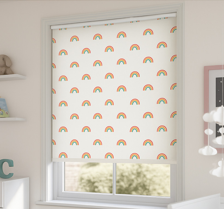Referencia: E6081La Cortina roller nórdico lluvia de arcoíris colorida es una auténtica obra de arte para tus ventanas. Su diseño vibrante presenta un hermoso arcoíris que se despliega sobre un fondo suave, creando un ambiente alegre y acogedor en cualquier habitación. Esta cortina no solo embellece tu espacio, sino que también ofrece funcionalidad, protegiendo tu hogar de la luz solar directa y brindando privacidad cuando lo deseas.