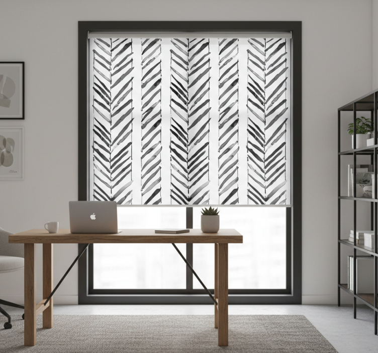 Cortina roller oficina diseño geométrico blanco y negro