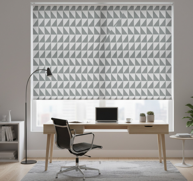 Cortina roller oficina patrón geométrico gris