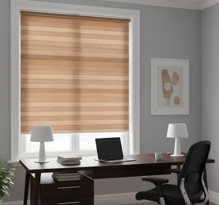 Cortina roller oficina tablones de madera rústicos elegantes