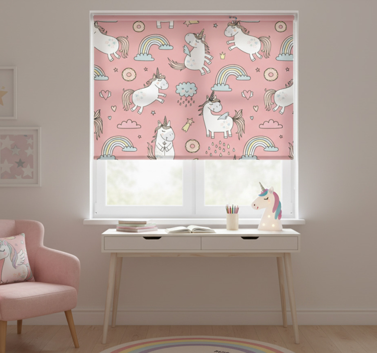 Cortina roller rosa encanto de unicornio mágico