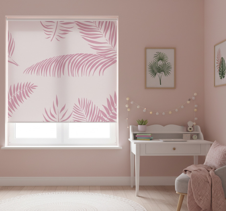 Cortina roller rosa hojas de palma grandes
