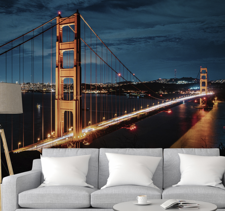 Embárcate en un viaje visual con nuestro mural ciudad golden gate bridge de noche, que captura la majestuosidad del famoso puente en una escena nocturna vibrante. La representación gráfica muestra una ciudad iluminada, donde las luces brillan intensamente, creando un ambiente mágico. Este mural no solo es una obra de arte, sino también una ventana a un mundo lleno de vida y encanto nocturno.