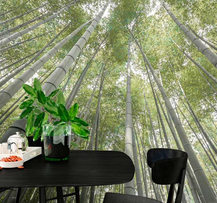 Referencia: F12097El diseño presenta un imponente bosque de bambú visto desde abajo, mostrando altos y delgados tallos de bambú que se elevan hacia arriba. Las exuberantes hojas verdes filtran la luz suavemente, creando una atmósfera serena, perfecta para aquellos que buscan una conexión con la naturaleza.