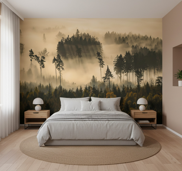 Mural de bosque bruma etérea de la mañana