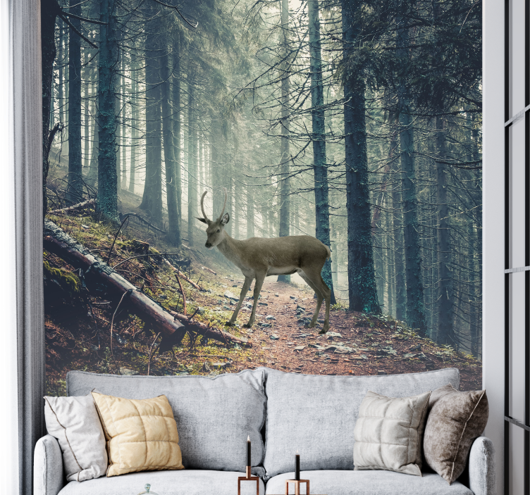 Mural de bosque ciervo en el bosque
