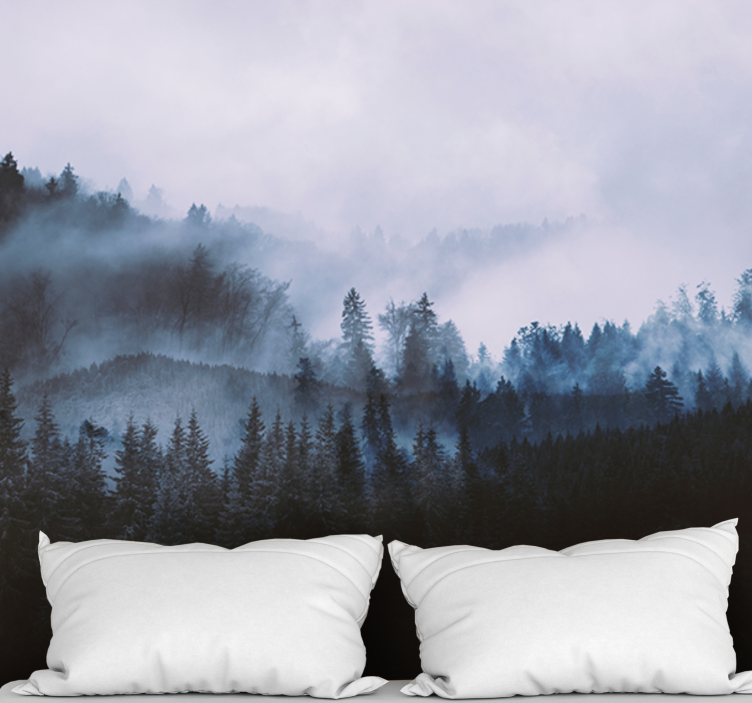 Transforma tu espacio con el Mural de bosque paisaje de coníferas brumoso, un diseño que evoca la serenidad de un paisaje natural. Este mural presenta una hermosa combinación de árboles, montañas y niebla, donde los pinos se alzan majestuosamente entre un fondo de neblina suave. Las hojas perennes añaden un toque de frescura a un ambiente que invita a la calma y la contemplación.