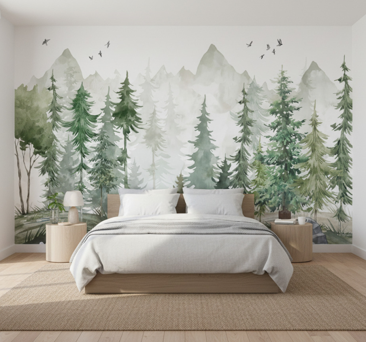 Transforma tu hogar en un refugio acogedor con el Mural de bosque mural de bosque pino nórdico minimalista. Este mural no solo embellece tus paredes, sino que también crea una atmósfera de paz y armonía, perfecta para relajarte después de un largo día. Al utilizar este mural, estás eligiendo una decoración que inspira conexión con la naturaleza y aporta calidez a cualquier ambiente.