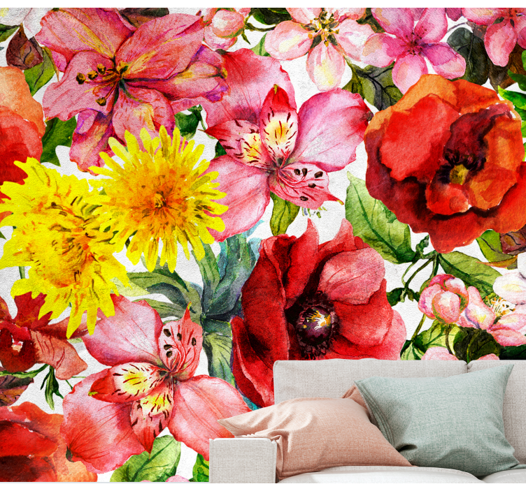 Descubre la belleza natural en tu hogar con nuestro Mural de flores composición de flores vibrantes. Este diseño encantador presenta una sinfonía de amapolas, flores silvestres, margaritas, rosas y un toque de acuarela que transforma cualquier espacio en un jardín florido. Cada detalle está cuidadosamente elaborado para brindar una explosión de color y vida a tus paredes, creando un ambiente acogedor y fresco que te hará sonreír cada día.