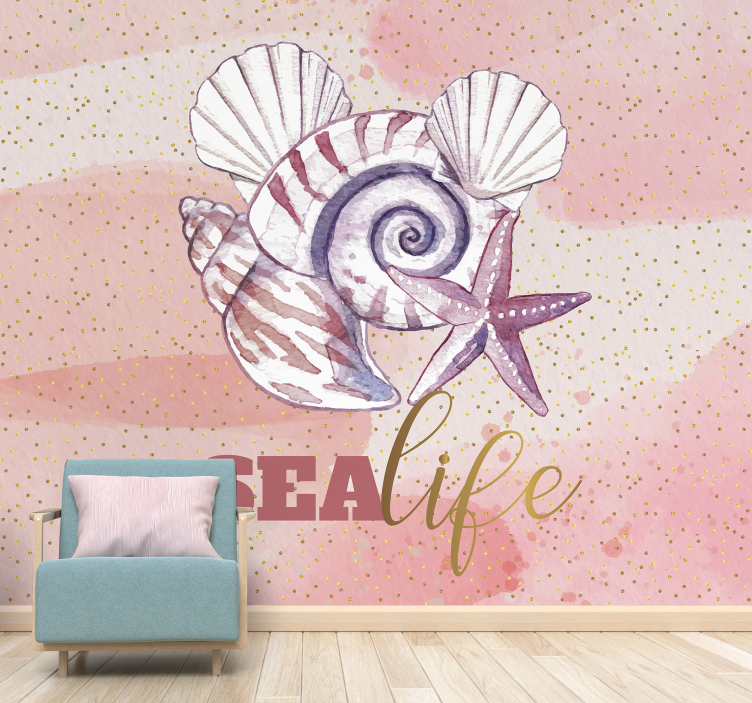 Mural de mar con conchas y estrellas de mar