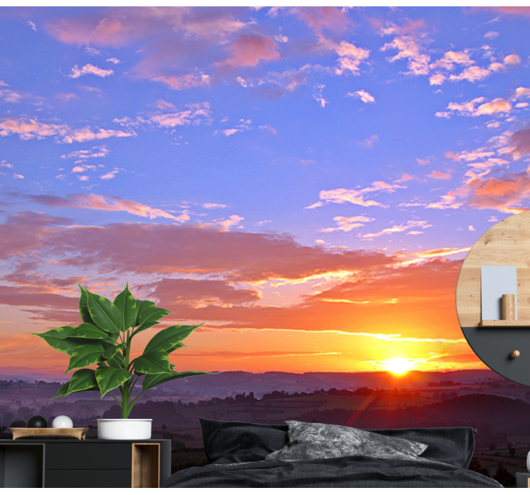 Sumérgete en la magia de un atardecer con nuestro Mural de paisajes atardecer sobre colinas. Este impresionante diseño captura un cielo lleno de nubes suaves, montañas majestuosas y un horizonte que te transportará a la serenidad de la naturaleza. Cada detalle de este paisaje evoca la belleza de un atardecer en las sierras, ofreciendo una experiencia visual única llena de calma y armonía.