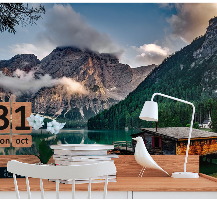 Mural de paisajes escapada al lago de montaña