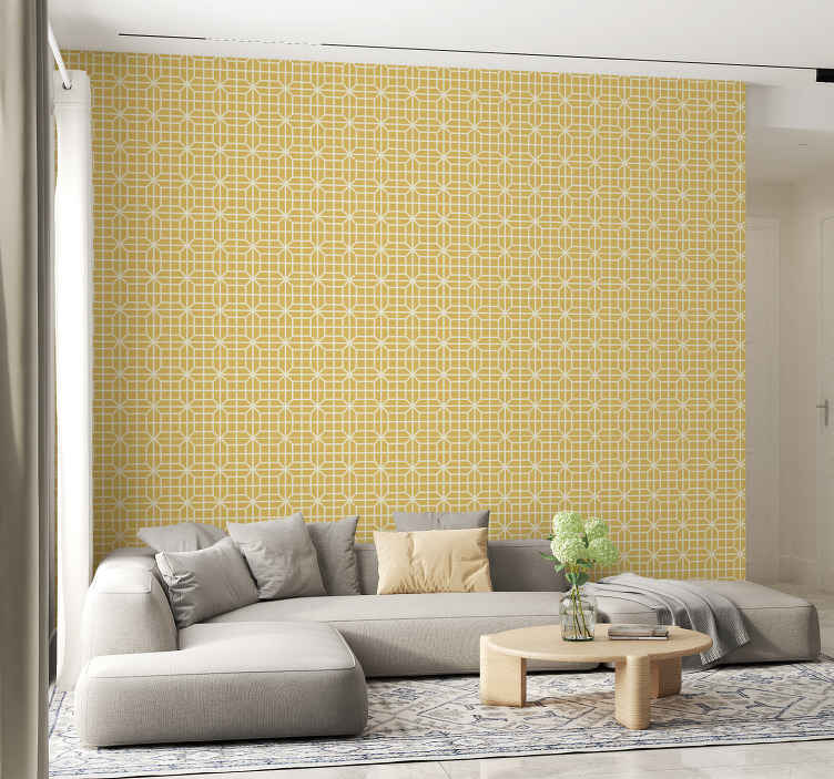 Papel tapiz amarillo patrón geométrico