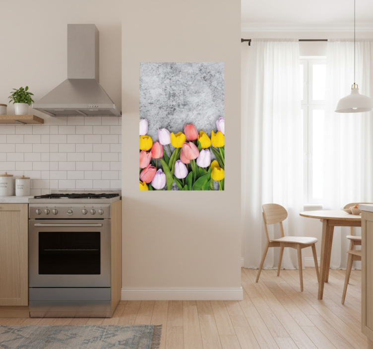 Transforma tu cocina en un lugar inspirador con el Poster cocina poster cocina flores de tulipanes similares. Este elemento decorativo no solo embellece el ambiente, sino que también evoca una sensación de frescura y vitalidad. Los tulipanes, símbolo de amor y renacimiento, hacen de este poster una elección ideal para aquellos que desean añadir un toque personal y acogedor a su hogar. ¡Deja que la belleza de las flores ilumine tus momentos culinarios!