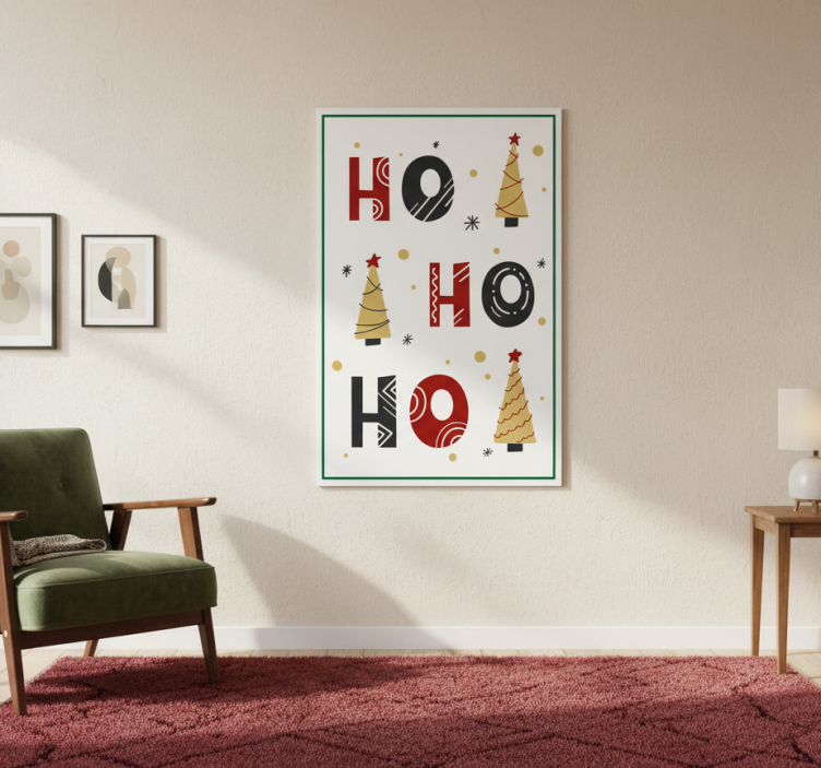 Referencia: G1093Este Poster navidad diseño de texto navideño ho ho ho es una obra maestra visual que iluminará cualquier rincón de tu hogar. Con un gramaje de 180g/m2, este cartel destaca por su acabado semimate sin reflejos, lo que permite que los colores brillen con alta intensidad. El diseño alegre y festivo presenta el icónico texto 'ho ho ho' en un estilo tipográfico encantador, perfecto para evocar la magia de la Navidad y crear un ambiente acogedor y festivo.