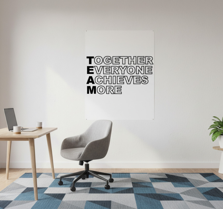 Referencia: G675Descubre el Poster oficina cita del equipo, una lámina decorativa que destaca por su gramaje de 180g/m2, ideal para carteles. Su acabado semimate evita reflejos, permitiendo que la alta intensidad de color resalte en tu espacio. Este diseño no solo es visualmente atractivo, sino que también aporta un ambiente inspirador y profesional a cualquier oficina.