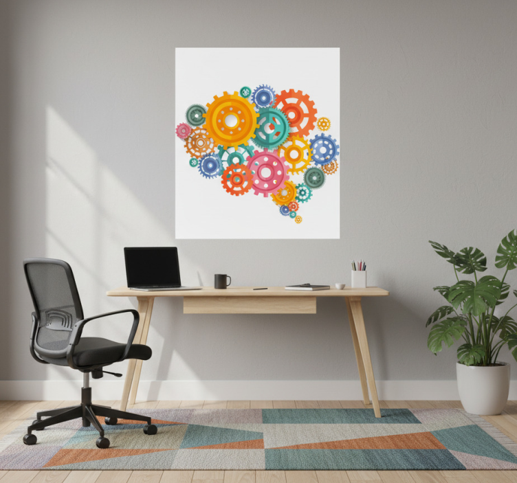 El Poster oficina engranajes de colores en el cerebro es perfecto para aquellos que buscan inspirar la creatividad y la productividad en su entorno laboral. Este cartel no solo decora, sino que también motiva a quienes lo miran, creando un ambiente positivo y estimulante. Su diseño único y colorido puede transformar cualquier oficina en un lugar lleno de energía y dinamismo, ideal para fomentar la colaboración y el intercambio de ideas. ¡Haz que cada jornada laboral se sienta más vibrante!