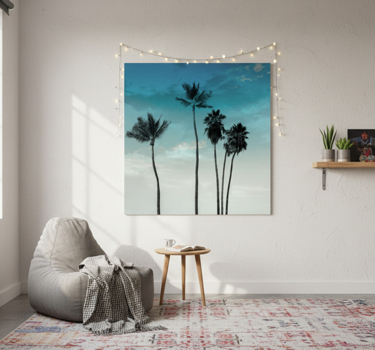 El Poster salón diseño de cinco palmeras altas es el complemento perfecto para transformar cualquier rincón de tu hogar. Imagina la calidez y la frescura que aportan estas majestuosas palmeras a tu salón. No solo decorarás tus paredes, sino que también crearás un ambiente relajante y lleno de vida. Este poster es ideal para aquellos que buscan una forma sencilla y efectiva de personalizar su espacio con un toque de naturaleza y estilo.