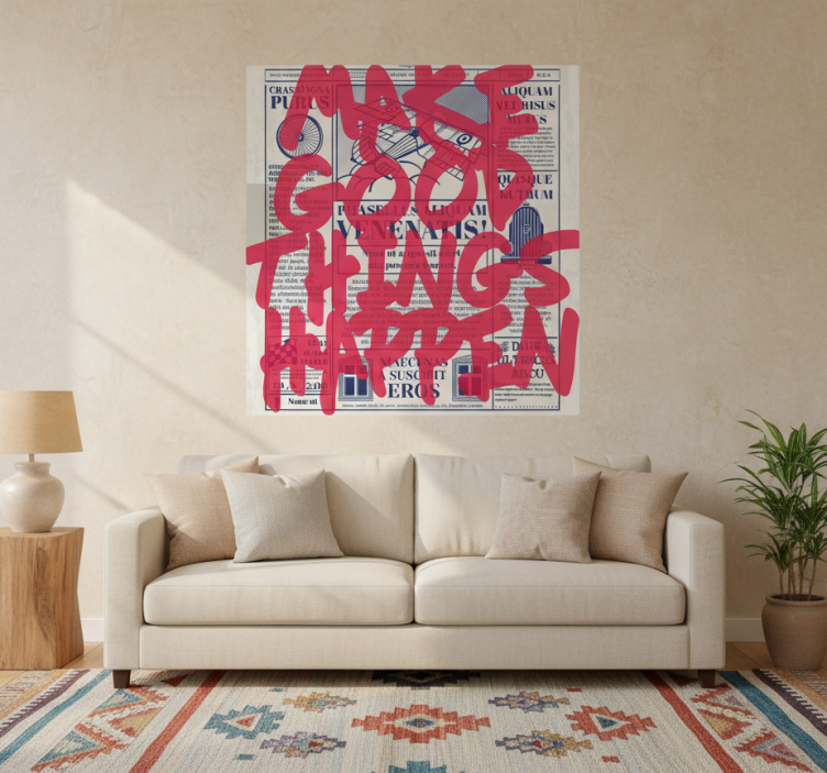 Para disfrutar de tu poster salón haz que sucedan cosas buenas diseño retro, te recomendamos usar cinta adhesiva de doble cara en la parte posterior. Alternativamente, puedes enmarcarlo o utilizar chinchetas y blu-tack reutilizable, asegurando que tu arte se mantenga firme y visible. ¡Así, tu decoración estará lista para inspirar desde el primer momento!