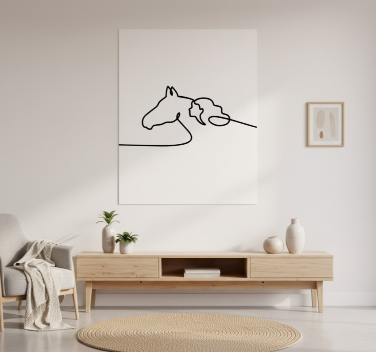 Referencia: G895Este Poster salón ilustración de mujer con caballos es una obra de arte que captura la belleza y la conexión entre la figura femenina y estos majestuosos animales. Con un gramaje de 180g/m2 y un acabado semimate que evita los reflejos, esta lámina decorativa resalta la alta intensidad de color que logra cautivar y transformar cualquier espacio. Sin duda, es una pieza que añade un toque de elegancia y sofisticación a tu hogar.