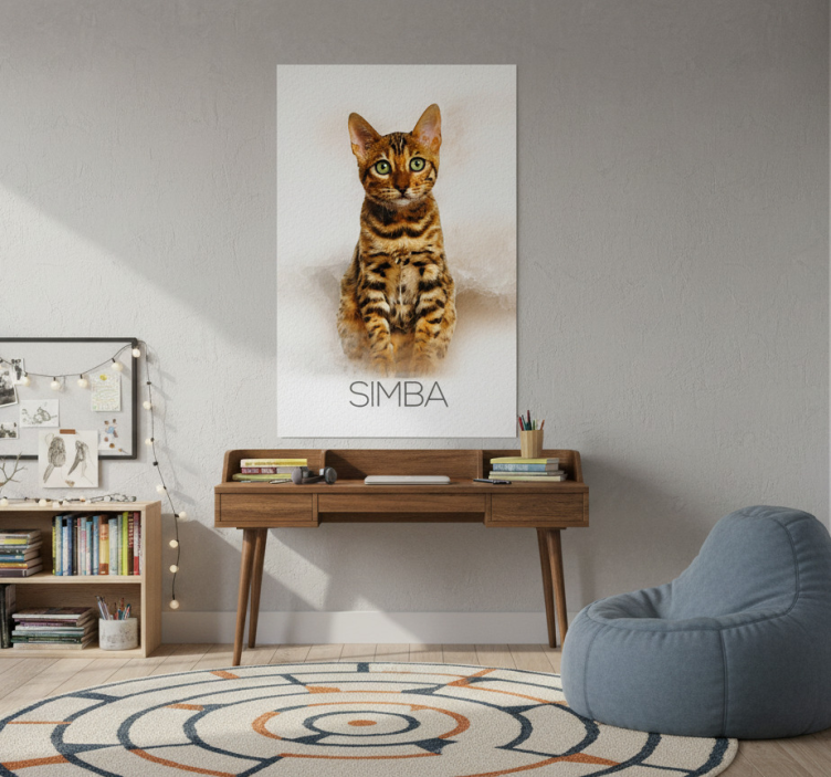 Un Poster salón retrato de mascota no solo embellece tu hogar, sino que también cuenta una historia. Al exhibir la imagen de tu mascota, transformas tu espacio en un lugar lleno de amor y recuerdos. Este tipo de decoración inspira calidez y una conexión emocional, haciendo que cada visita a tu hogar se sienta más especial. ¡Convierte tu salón en un refugio de alegría con este magnífico poster!