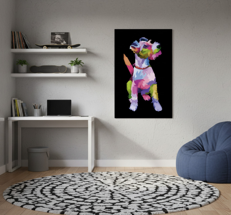 Referencia: G775Descubre el encanto de nuestro Poster salón zorra terrier geométrica, una obra de arte que combina un diseño moderno con la calidez de un amigo peludo. Este poster presenta una ilustración de un adorable zorra terrier en un estilo geométrico vibrante, utilizando una paleta de colores intensos que captura la atención y alegra cualquier espacio. Con un acabado semimate, la imagen resplandece sin reflejos, permitiendo que los matices de su alta intensidad de color brillen en tu hogar.